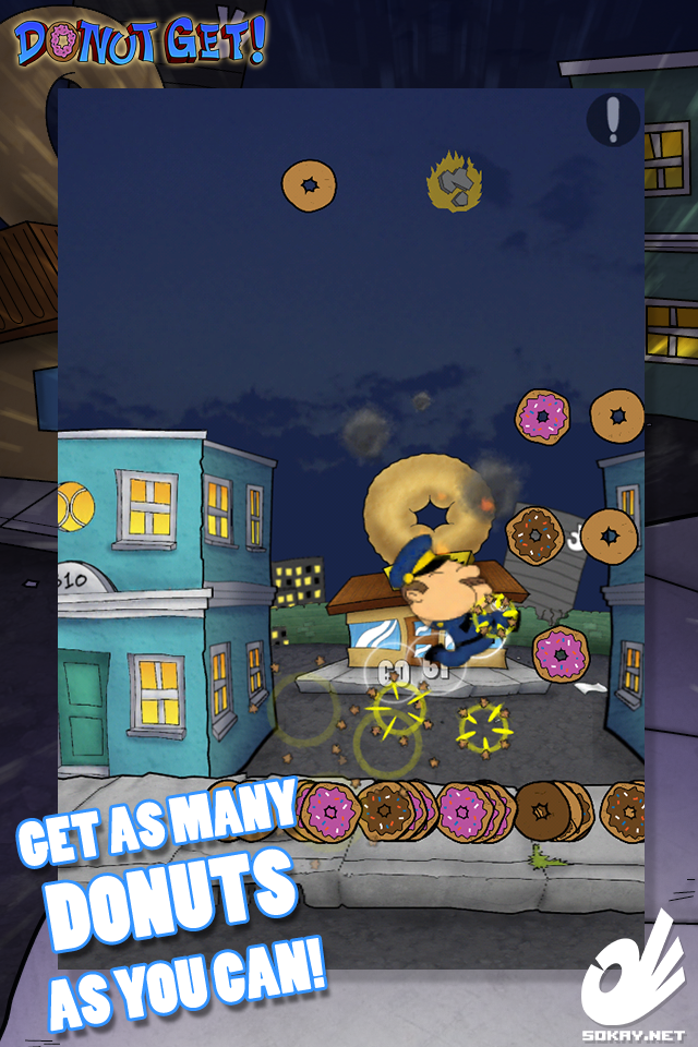 Los Angeles, California - Oct. 29, 2012 - Sokay.net is proud to announce that DONUT GET! is now available for iPhone, iPad, Android, and web browsers. DONUT GET! is a game about a cop eating donuts raining from the sky.